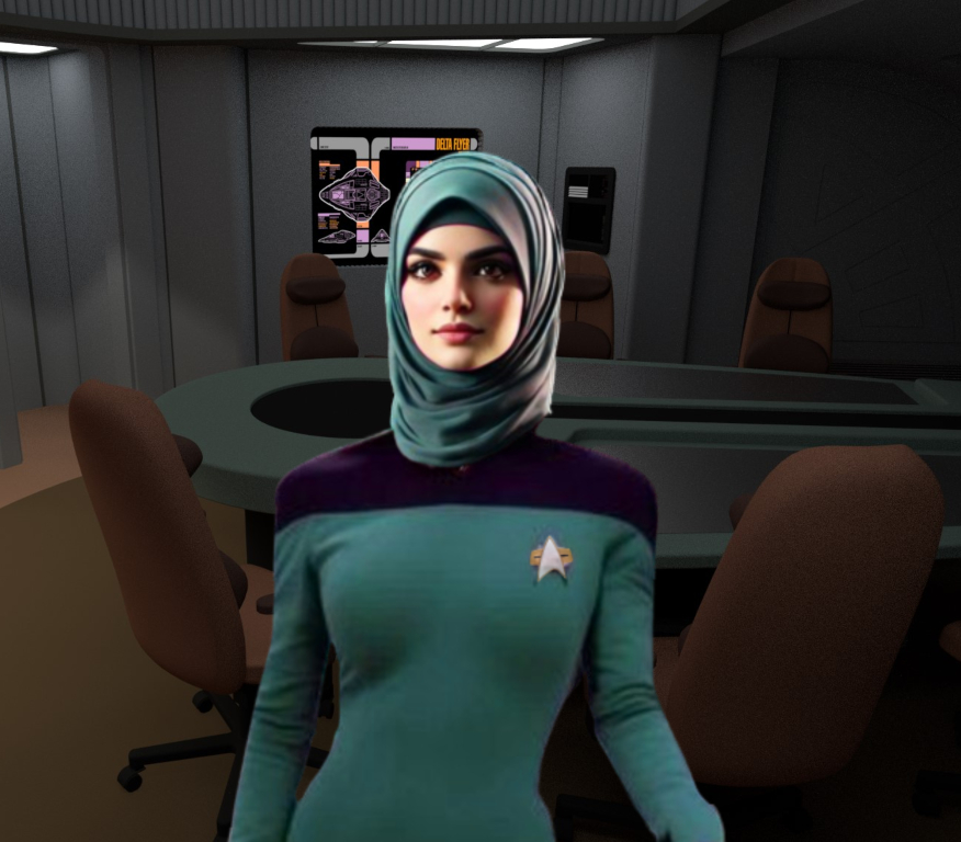 | Physical Description | Wearing a variant of the Starfleet uniform, Counselor Rania Bhatti wears an amira hijab head covering though sometimes will wear a shayla or standard hijab while on duty. These head coverings of cultural in nature honoring her family upbringing and are often vibrant yet solid coloured emphasizing the departmental colour that otherwise accents her uniform. Though she herself is not Human, she was raised by Humans who emigrated from Earth’s Kashmir valley, leaving their world behind in search for new opportunities as craftsmen and merchants. Rania has a dark honey skin tone and clear complexion, almond shaped and warm brown eyes that flash a bit of allure and playfulness to them. She often has a mischievous smirk on her face though in general, she is fairly law abiding. Child-like in some ways, Rania has still been labeled as an old soul because when push comes to shove, she buckles down and looks serious in serious moments. Still, she knows how to have fun. She is naturally a brunette, but very few catch a glimpse of her face with the exception of her expressive eyebrows which sometimes end up being her tell when it comes to playing poker. She lacks a true poker face but compensates by being easily trusted. Rania walks softly, has the grace of a dancer, the movement of a gazelle. She has caused many of people to become startled when then turn around to find her standing there watching them. |